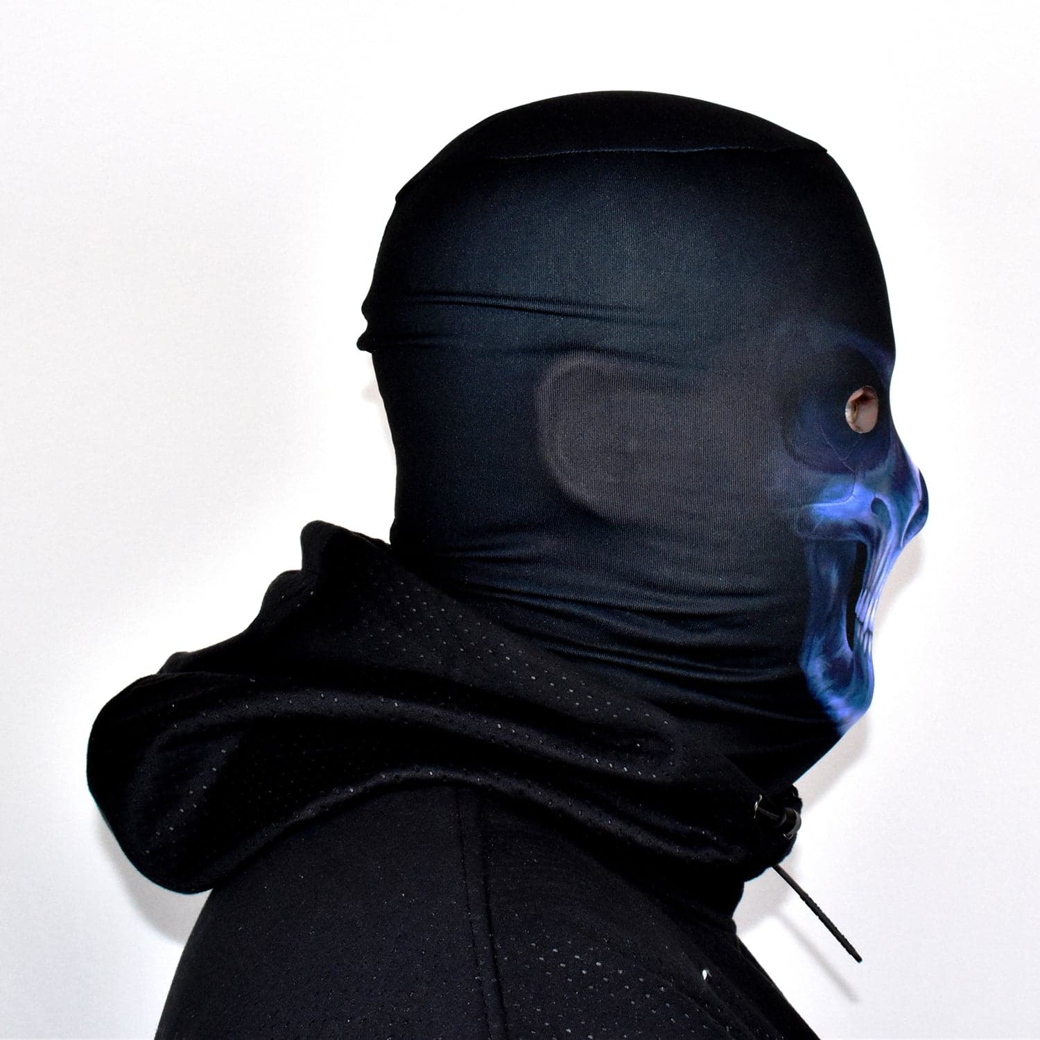From our FaceSkinz range, Wild Star Hearts presents the Grim Reaper in Blue Halloween Face Mask. This mask made of lightweight and breathable fabric; 86% Microfibre and 14% Polyester and can easily be folded into a pocket.