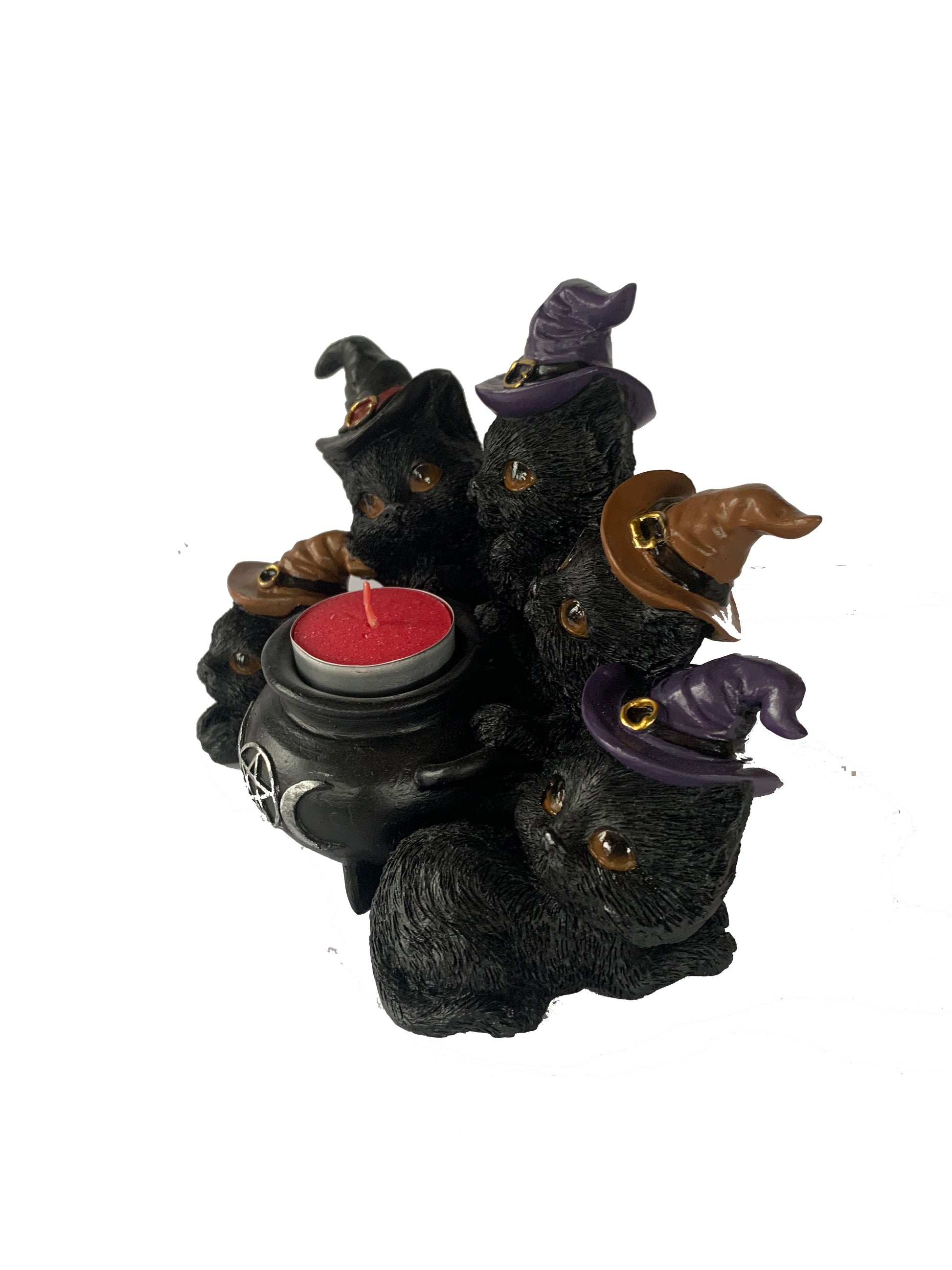 FIVE WITCH KITTENS T-LIGHT HOLDER - T-Light Holder Ornament