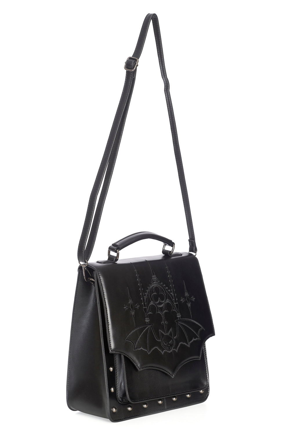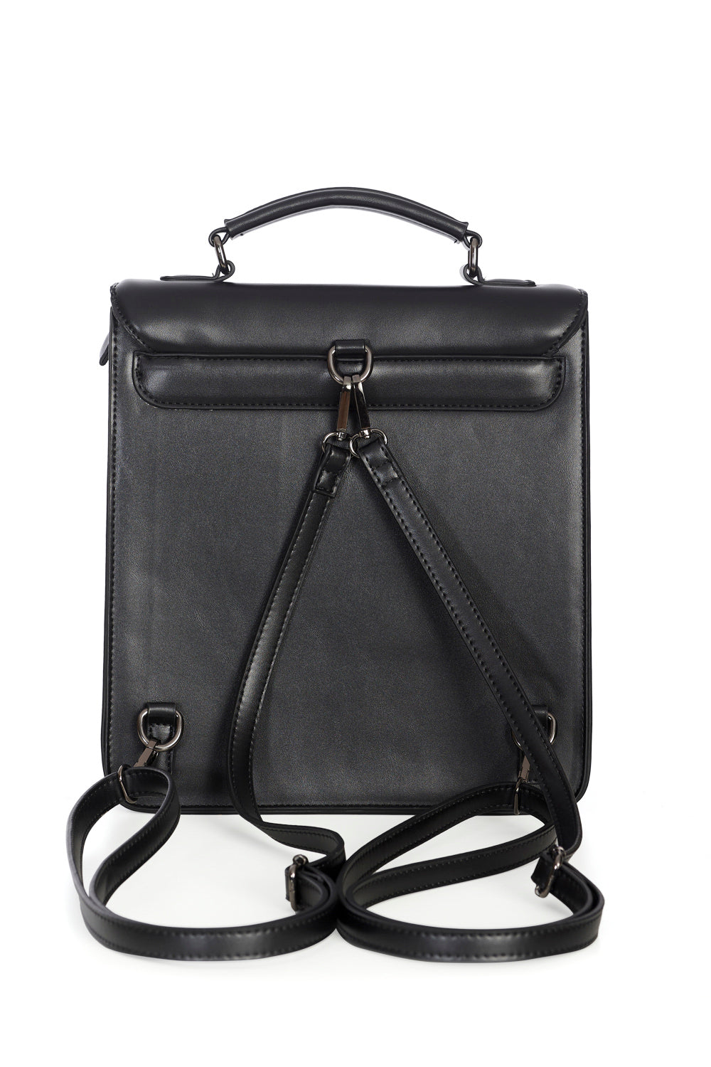 Gothic Embroidered Backpack with Inchangeable Straps Faux Leather Textile Lining