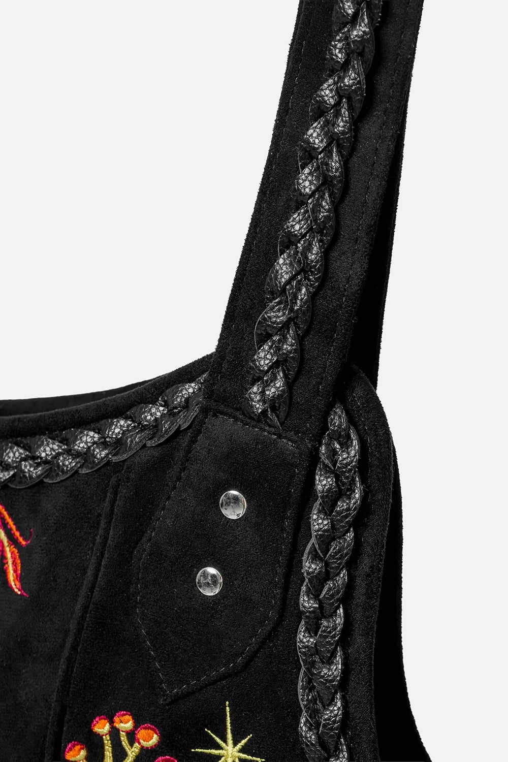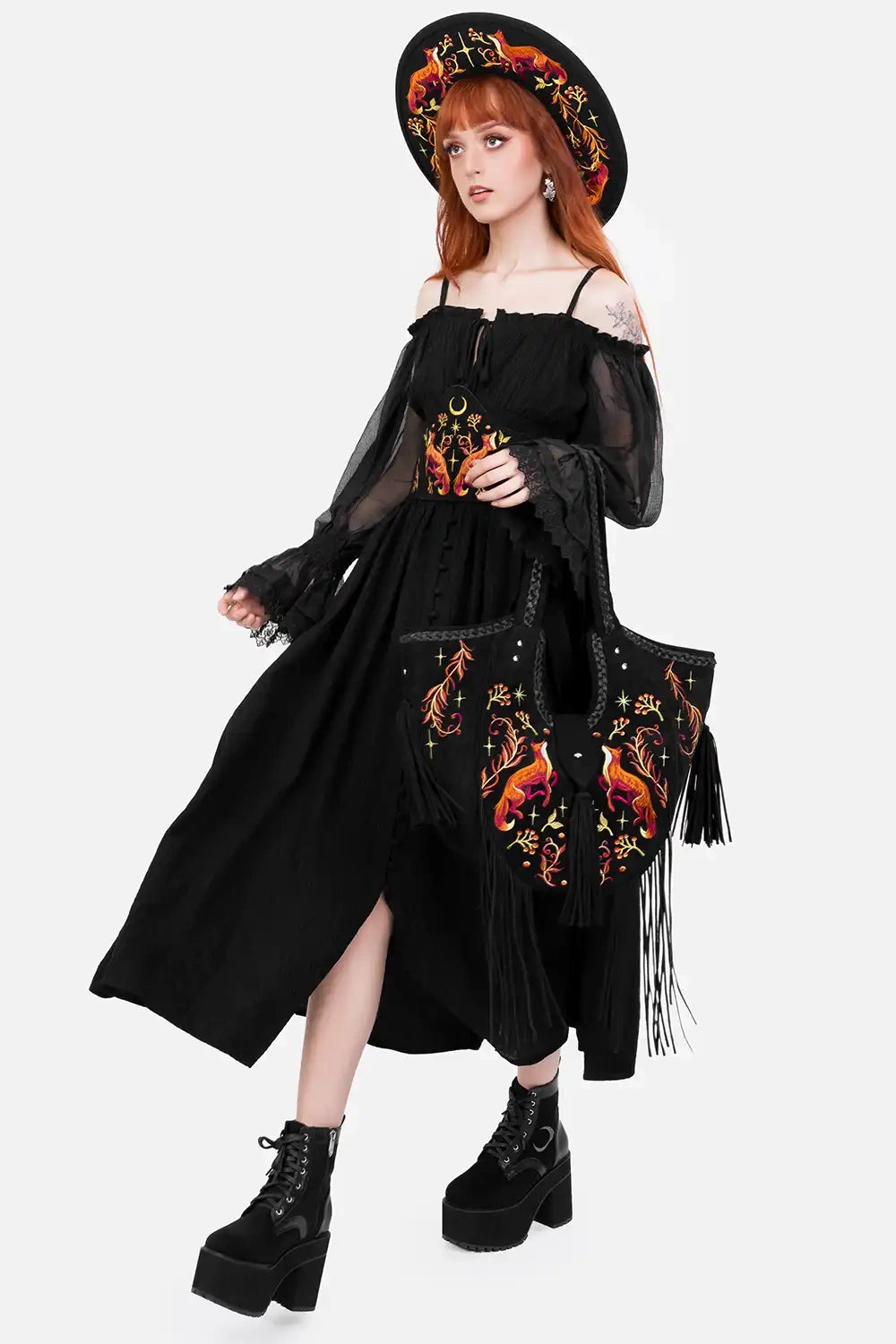 Meet a statement oversized shoulder bag for lovers ofĀ witchy fashion,Ā forestcore style, andĀ dark cottagecore elegance. Crafted from soft black faux suede, it embodies the spirit of the forest foxĀ āĀ fierce yet graceful, glowing like dancing fire flames in the dark.
