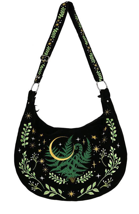 The Restyle hobo bag with embroidery of fern leaves, stars, and a golden crescent is a tribute to feminine nature. It’s mystical, and at the same time stylish and very roomy.