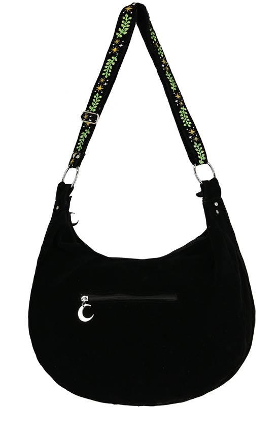 This unique gothic sack bag has an adjustable strap decorated with intricate embroidery. It’s equipped with a practical pocket on the back (for all important trinkets such as keys or tarot cards). It also has one extra pocket inside to help you organize your things.