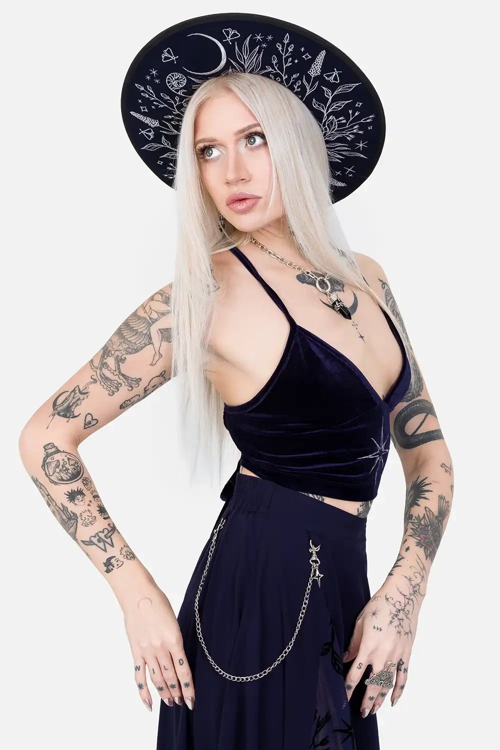 ⦠Detachable silver star chain at the hip, echoing the silver star embroidery of the Starlight Cami Top