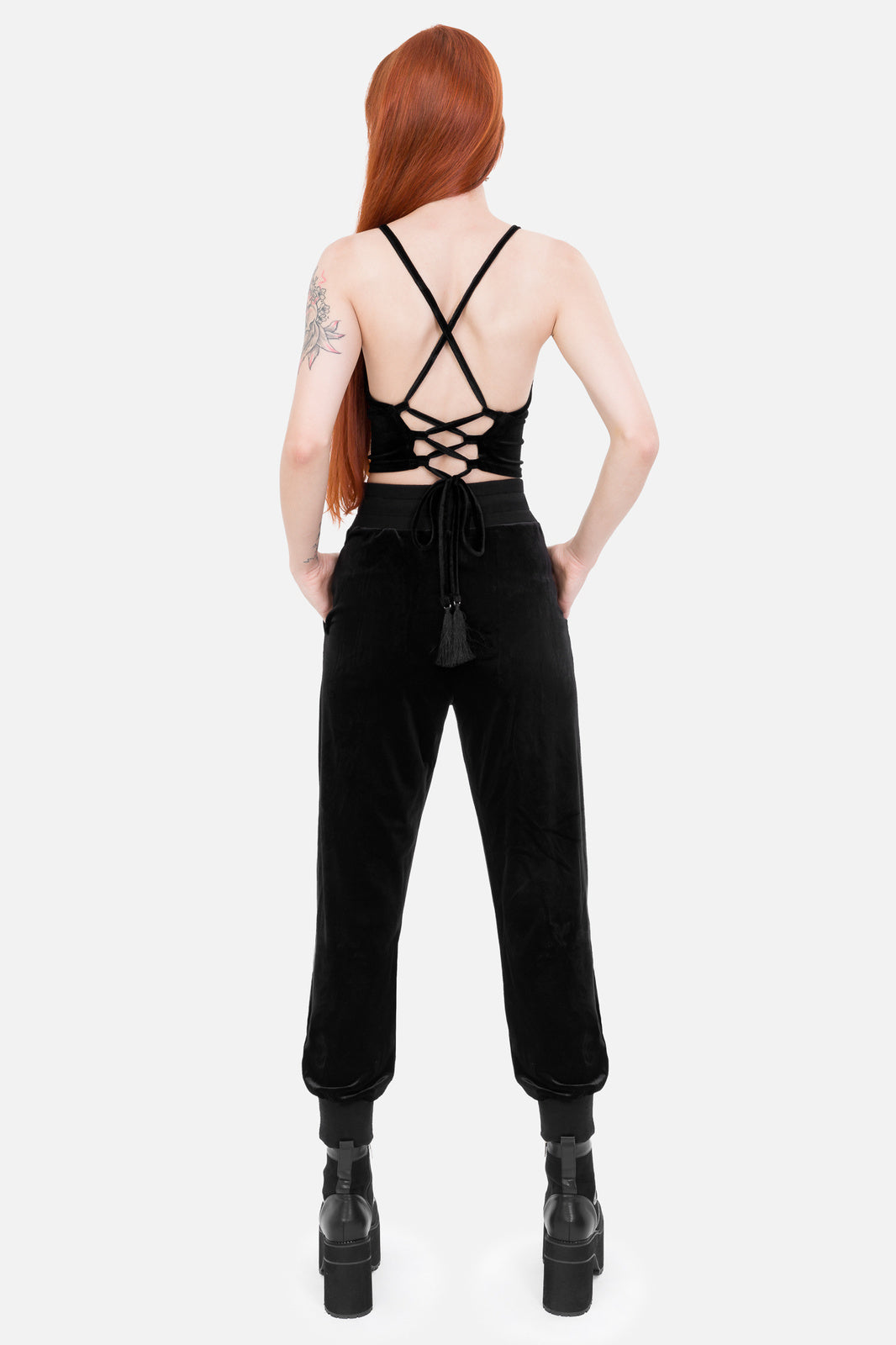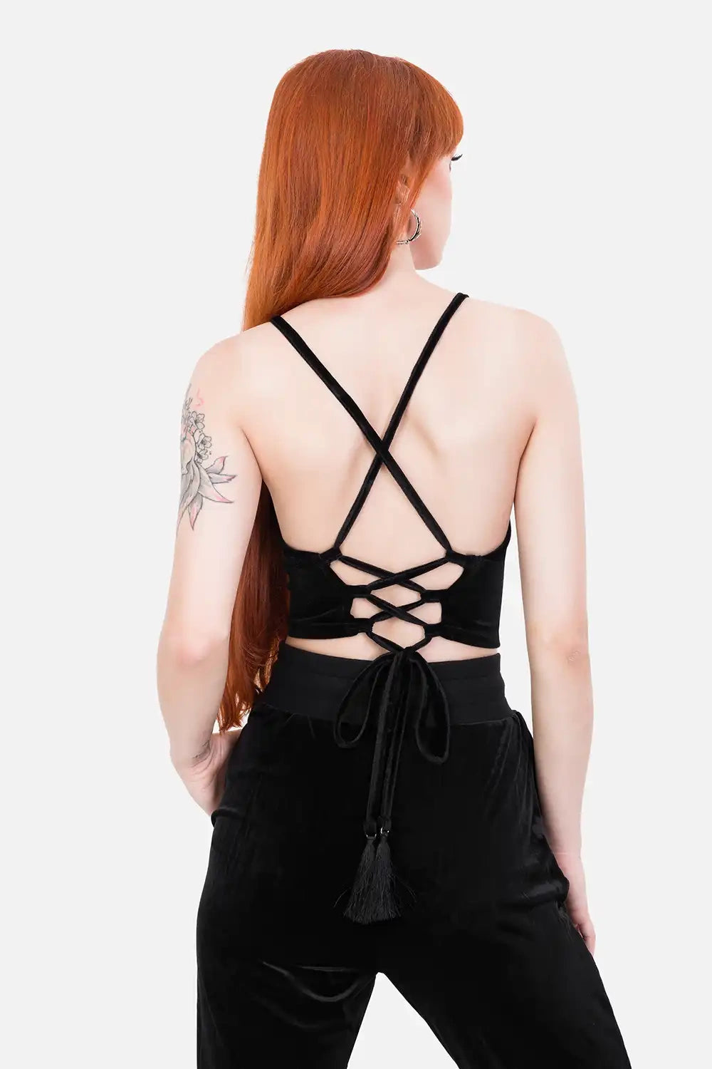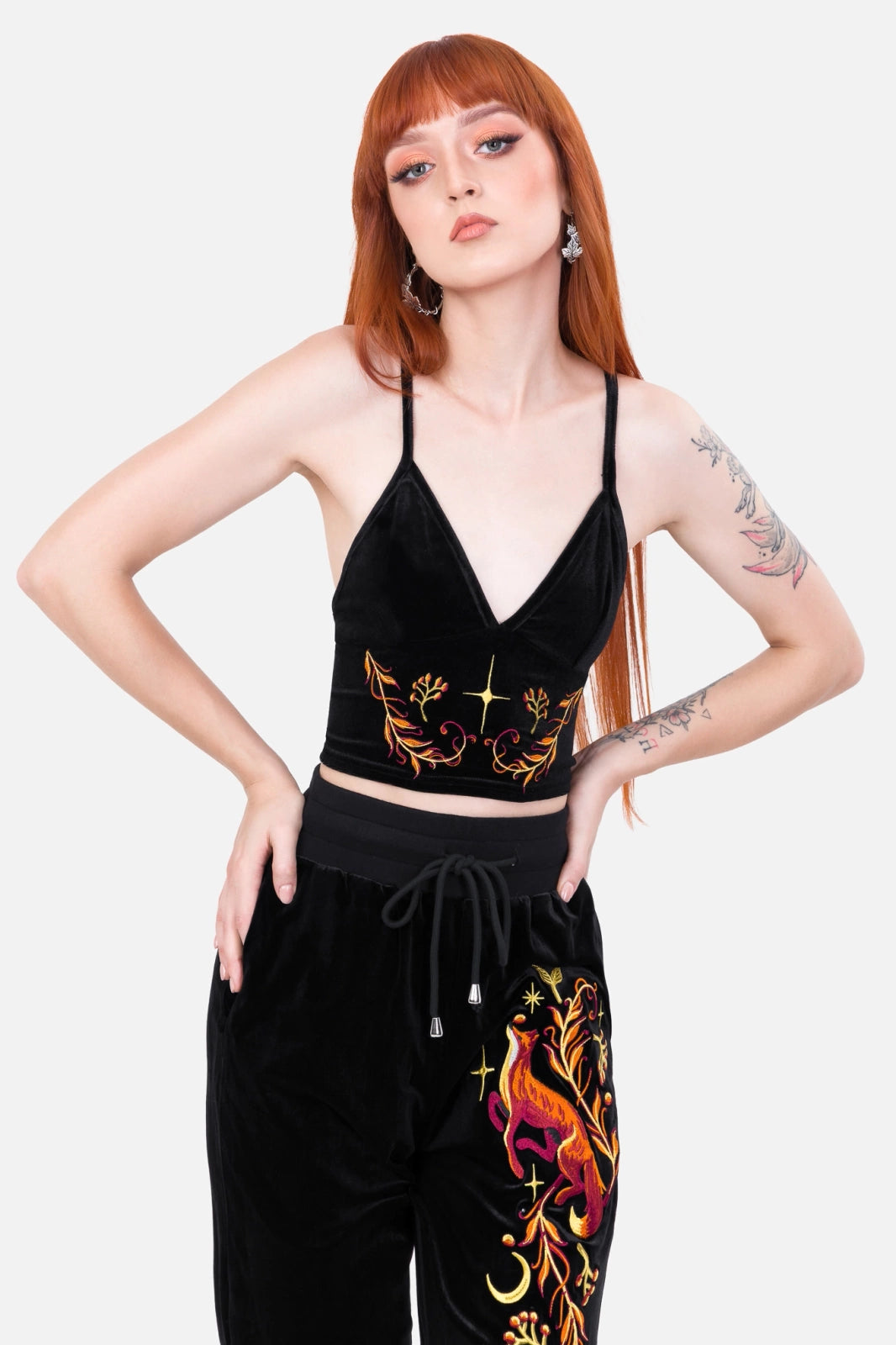 šāØĀ STARFIRE CAMI TOP ā Black Velvet Cami Top with Orange Plants and Star EmbroideryĀ š„