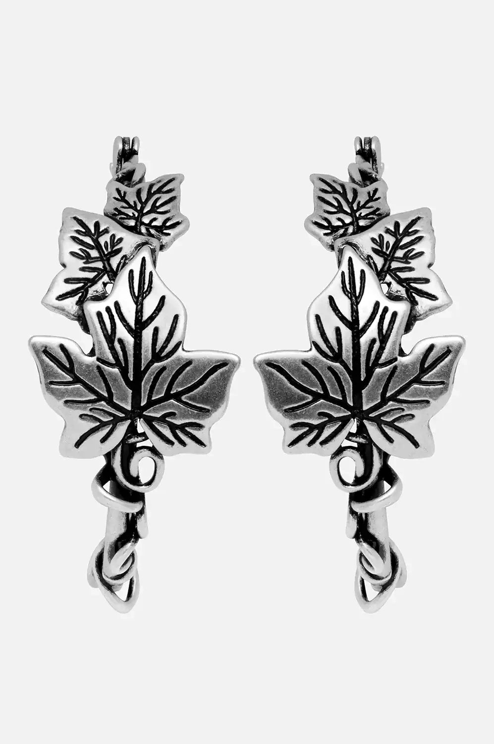 These silver leaf hoop earrings are made to enchant. 🌙 Delicate vines and ivy leaves wrap around each hoop. They blend gothic charm with natural elegance. A subtle statement for forest witches, dark romantics, and nature-inspired style. 🖤